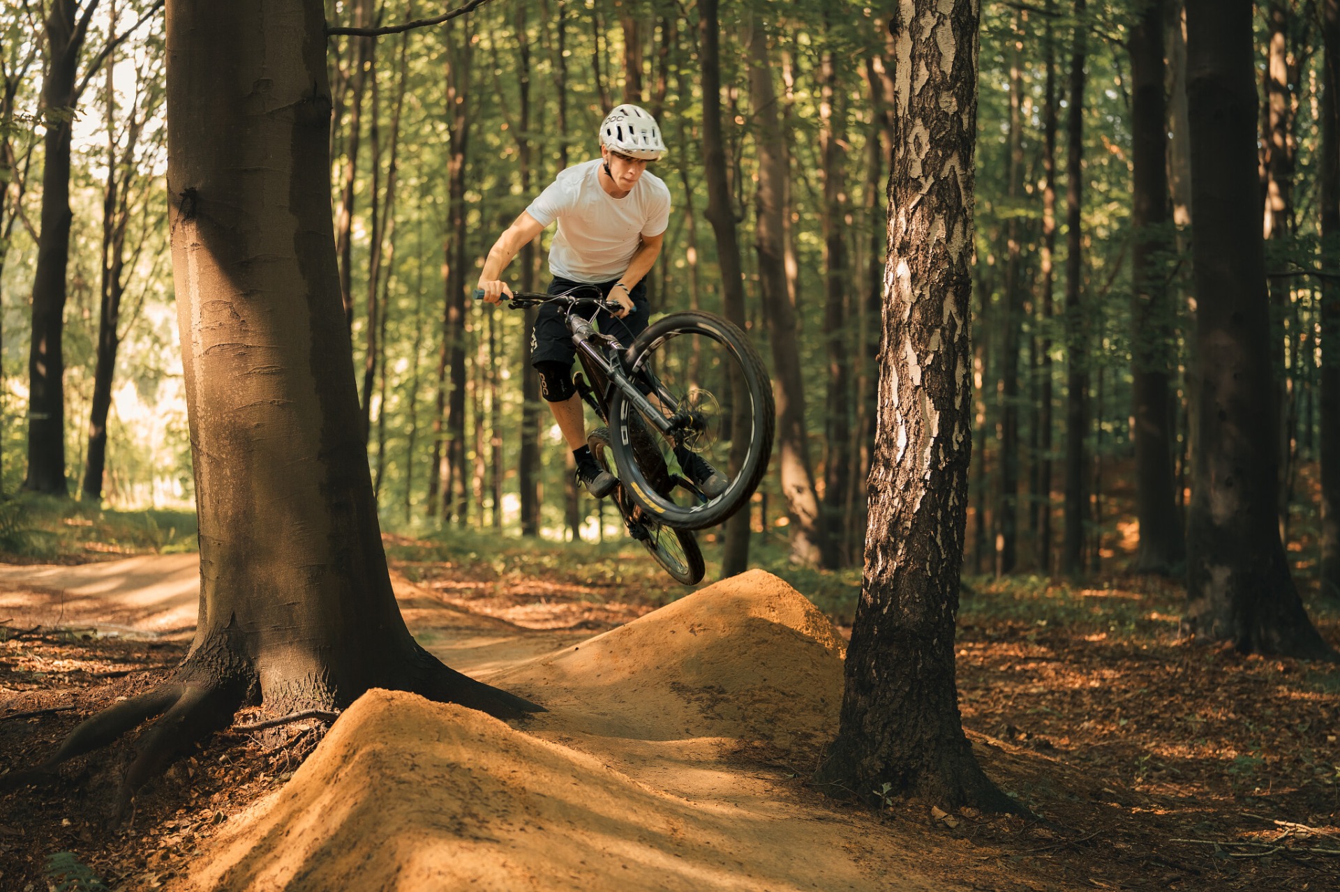 Akční pasáže kempu probíhají na pečlivě zvolených úsecích, kde můžeš bezpečně zkoušet nové věci. Postupně zvyšujeme náročnost skoků, dropů a gapů tak, aby sis budoval jistotu bez zbytečného rizika. Díky tomu se naučíš číst odraz, dopad i rychlost a přestaneš se bát posílat kolo do vzduchu.