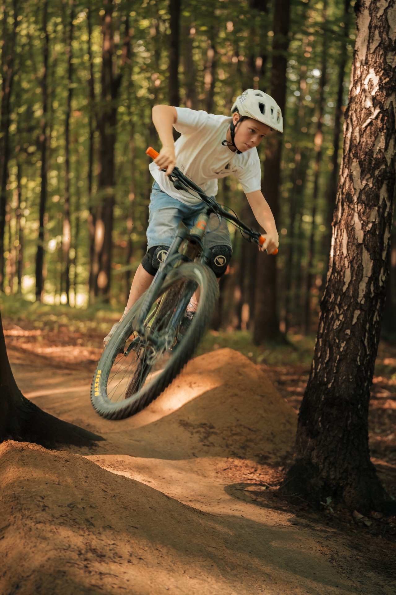 - Menší překážky a skoky – nácvik odlehčení předního/zadního kola, pumpování terénu, první malé skoky s důrazem na techniku.